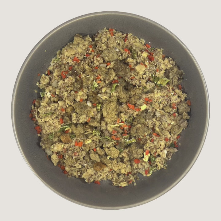 Just add water and watch this fresh, premium, grain-free freeze-dried formula transform into a soft, hearty meal in minutes. Made with gently cooked USDA lamb and chickpeas for sustained energy and healthy weight management. Shelf-stable, preservative-free, and perfect for dogs with food sensitivities or weight concerns. Fresh, wholesome nutrition made simple.